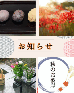 そこで、秋のお彼岸、おはぎ販売期間についてお知らせ致します。
