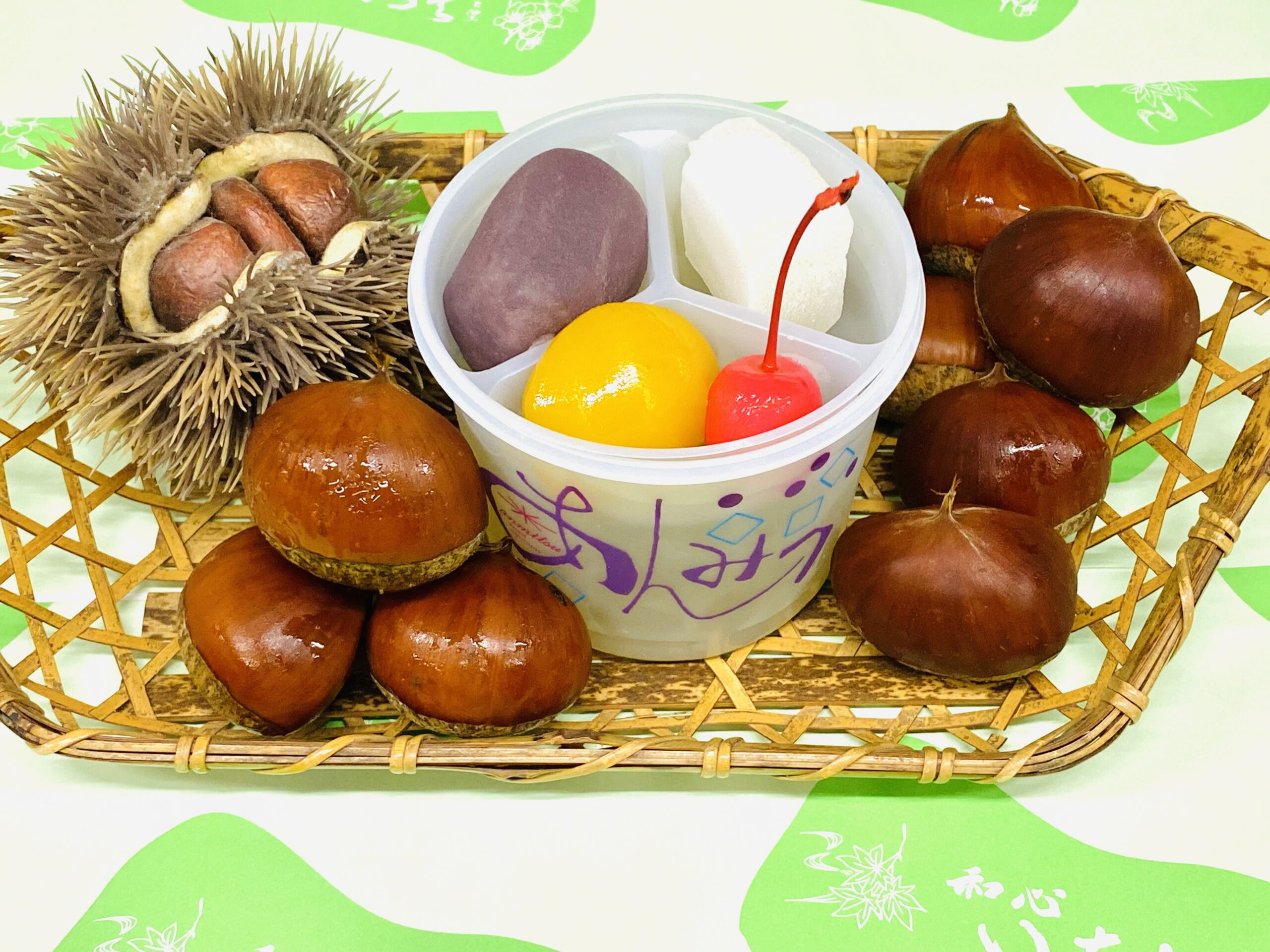小豆, 寒天, 黒糖, 白双糖, 栗, 赤豆, 餅粉